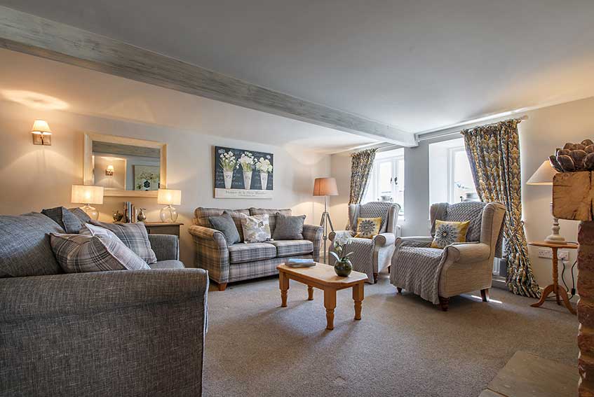 Luxuriously furnished with comfy sofas, antique furniture and china and with a selection of games, toys and books hidden under the stairs for the children to discover! Wood burner and 32" flat screen T.V. ( blu-ray and DVD) all lighting on dimmer switches.